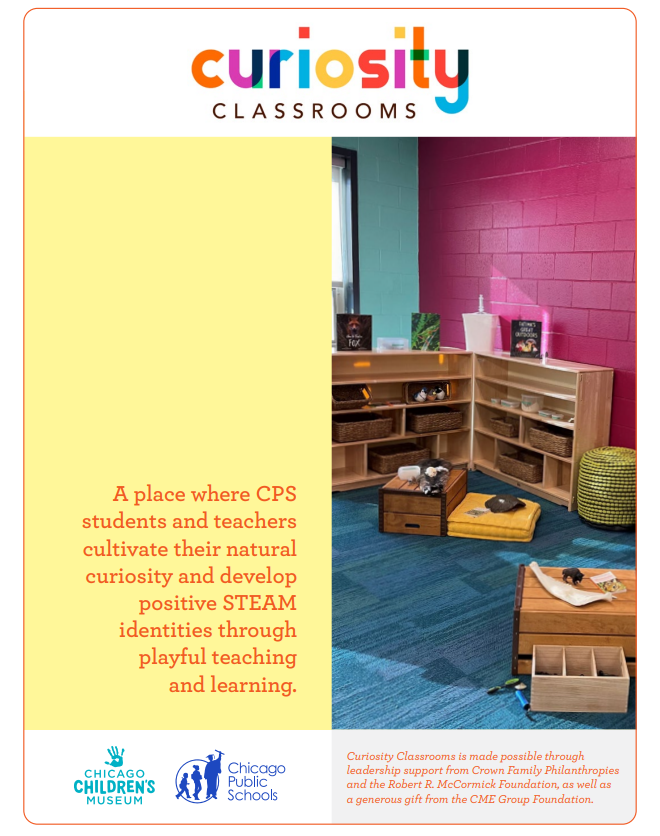 Curiosity Classrooms are designed by Chicago Children’s Museum for Pre-K to 2nd grade students in Chicago Public Schools, and created in partnership with the CPS Office of Early Childhood Education.